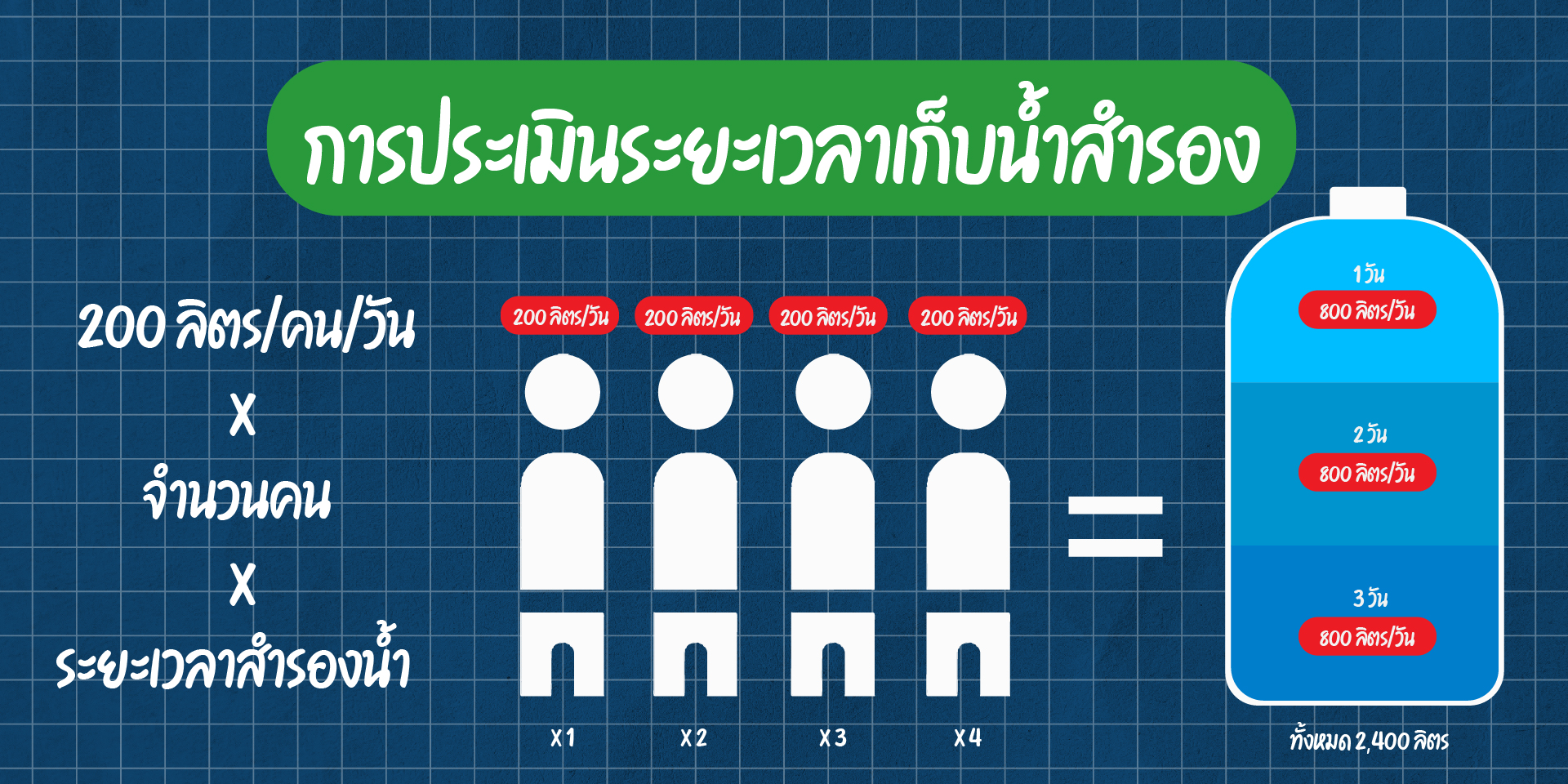 หากคุณต้องการเก็บน้ำสำรองสำหรับ 3 วัน ปริมาณน้ำที่ต้องการคือ: