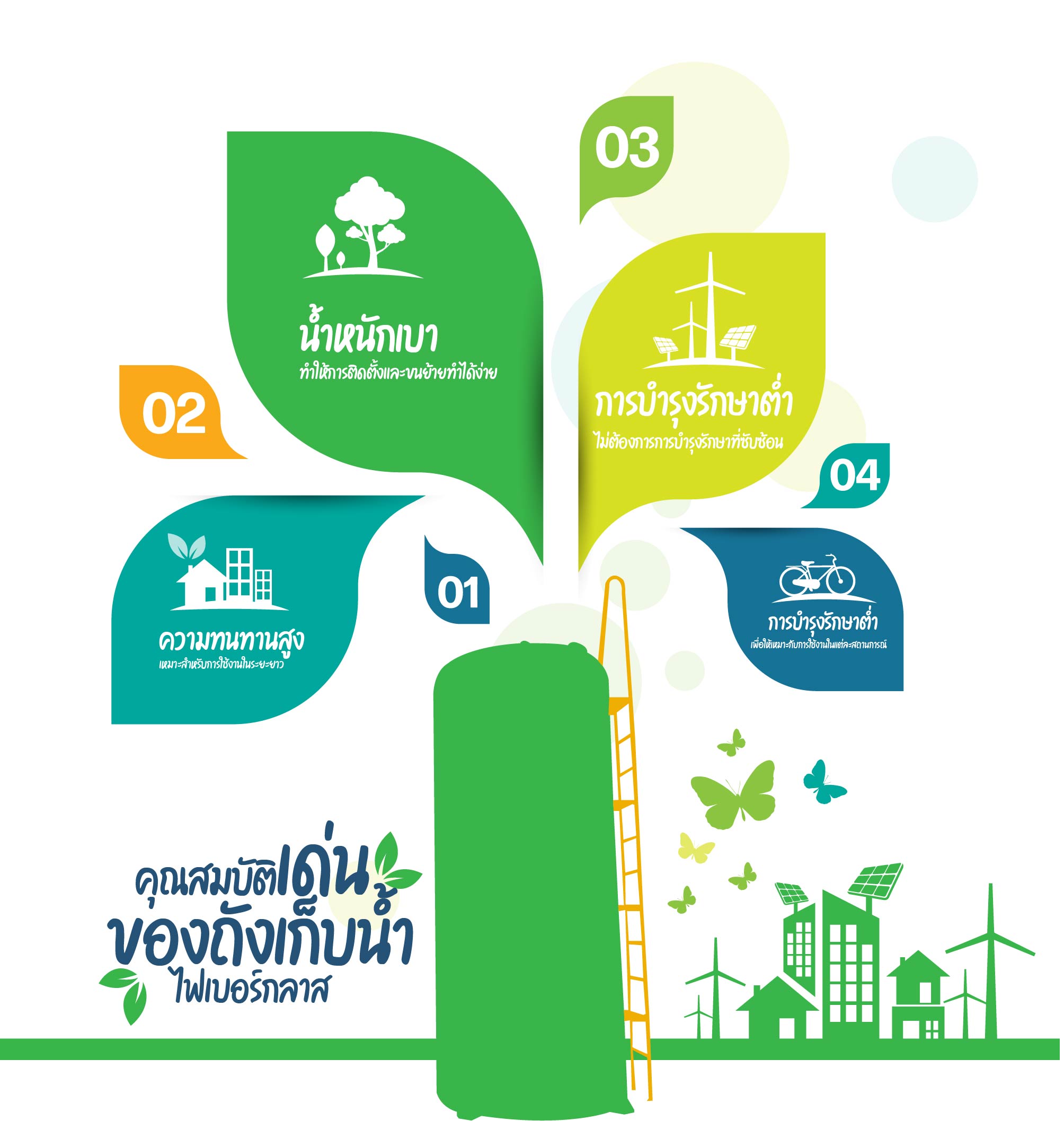 - สร้างภาพลักษณ์ที่ดีต่อองค์กร: การใช้เทคโนโลยีที่เป็นมิตรต่อสิ่งแวดล้อมอย่างถังเก็บน้ำไฟเบอร์กลาสสามารถเพิ่มภาพลักษณ์ให้กับองค์กรหรือธุรกิจในสายตาของสังคมและลูกค้า ธุรกิจที่ใส่ใจในสิ่งแวดล้อมและทรัพยากรจะได้รับการสนับสนุนจากผู้บริโภคมากขึ้น